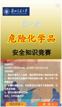 为宣传普及危险化学品安全生产政策法规知识,提高师生的安全意识,强化师生的危险化学品安全意识和环保意识,为危险化学品实验安全管理创造良好的社会氛围。按照《关于举办兰州交通大学2018年“实验室安全文化月”活动的通知》要求,2018年11月5至15日开展的兰州交通大学第二届危险化学品知识竞赛活动圆满结束,活动由实验室管理处主办,化学与生物工程学院承办。