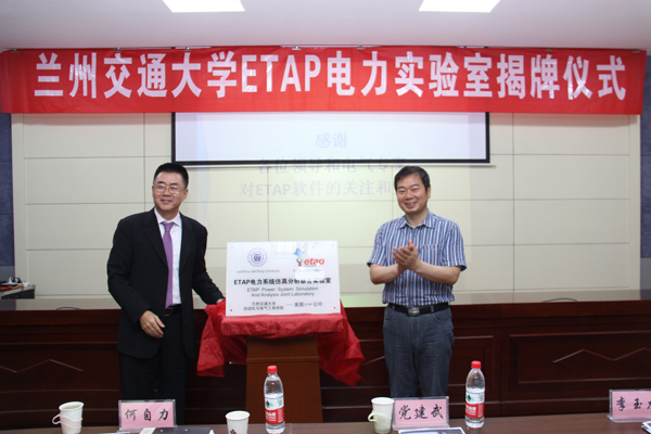 党建武副校长和何自力总经理共同为ETAP电力系统仿真分析联合实验室揭牌。