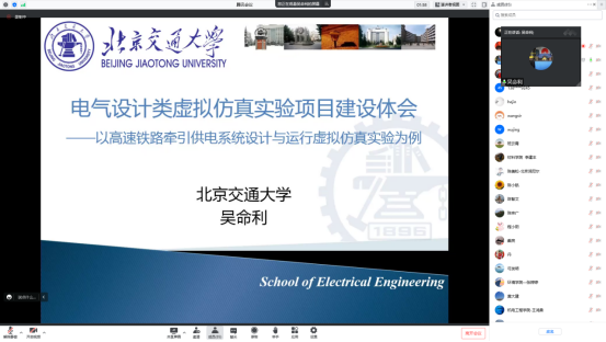 北京交通大学电气工程学院院长吴命利教授,结合自己承担参加国评的“高速铁路牵引供电系统设计与运行虚拟仿真实验项目”,分享了电气设计类虚拟仿真实验项目建设体会。