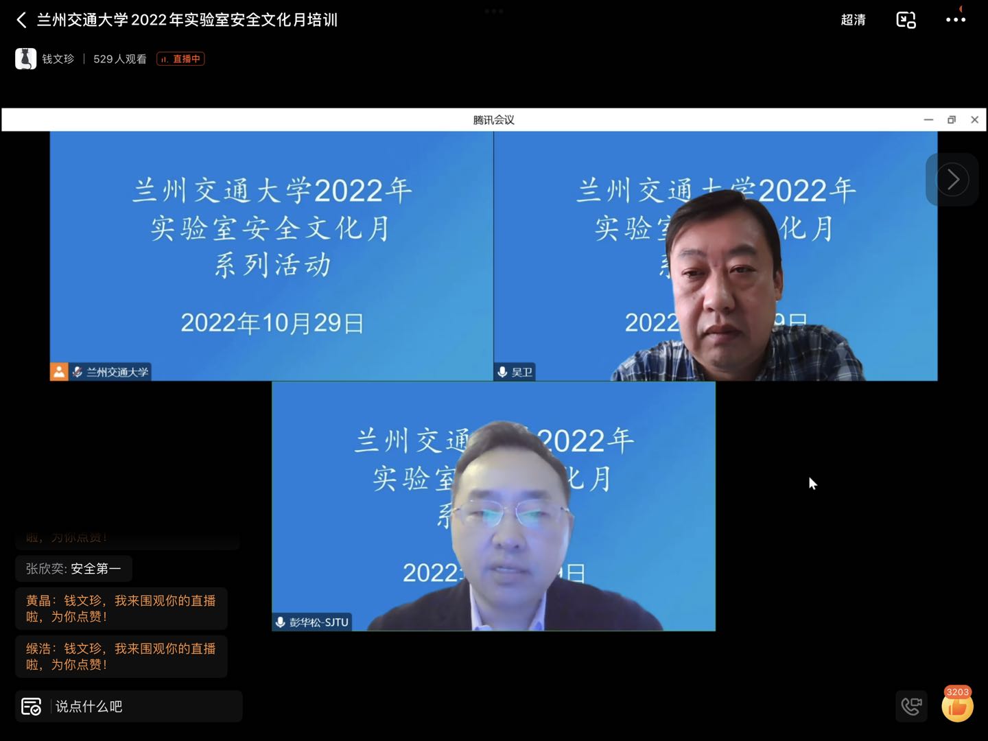 为进一步加强我校实验室安全管理,建设平安和谐校园,10月29日上午,实验管理中心特邀上海交通大学实验室安全与环保中心彭华松研究员通过线上直播的方式为我校教师做了有关实验室安全管理工作的主题报告。我校及省内各实验室相关教师参加,共计学习观看人数550余人。
