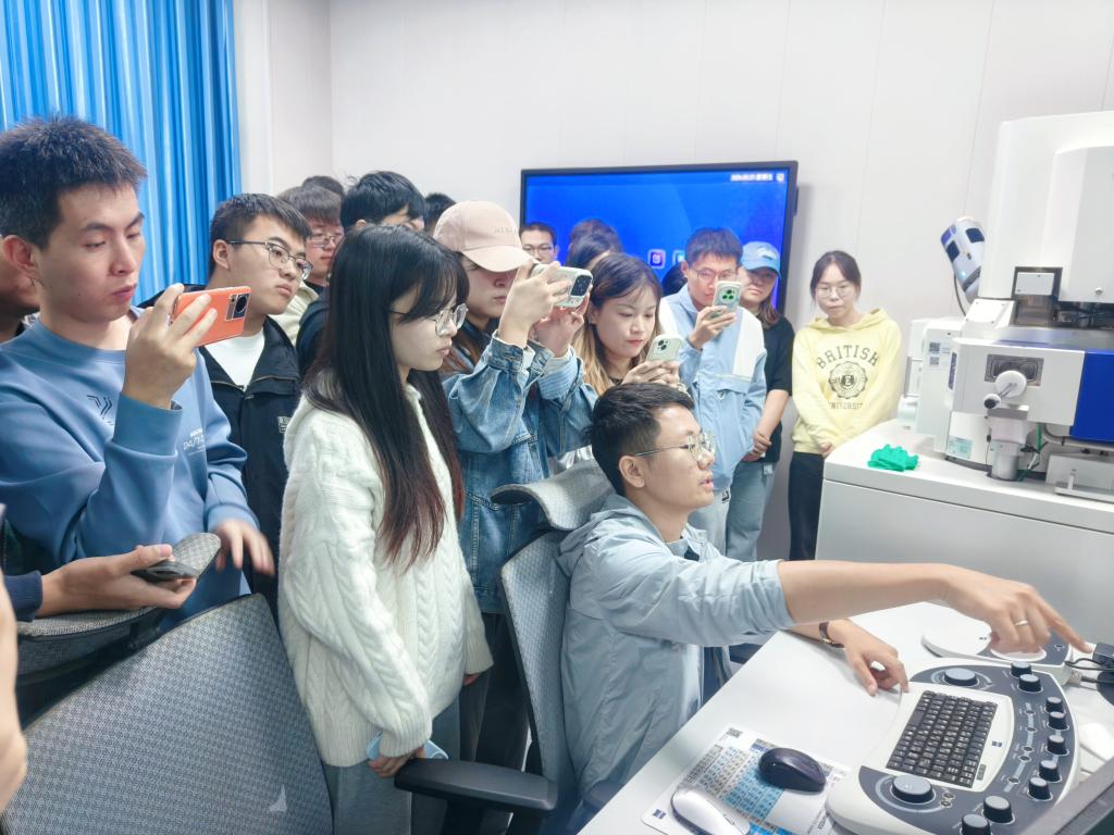 高迪工程师分享了蔡司跨尺度关联技术的相关案例,介绍了扫描电镜原位拓展技术,解答了学校师生们的常见SEM成像问题。随后高迪工程师在我校蔡司Gemini SEM 500场发射扫描电镜进行操作演示,期间展示了金属样品二次电子像以及背散射电子像的拍摄方法和拍摄技巧,并与学生们进行了深入的技术探讨和交流。通过本次研讨会,师生们进一步了解了众多高精尖显微技术,提高了大家对样品的分析测试能力。