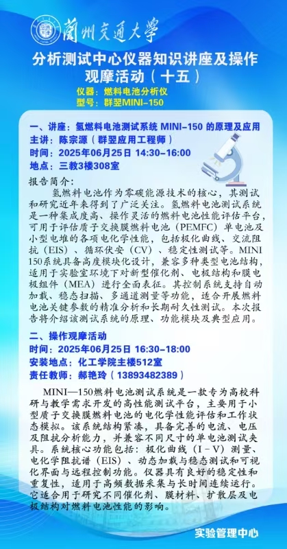 实验管理中心分析测试中心定于2025年6月25日举办本年度第十五期仪器知识讲座及实操观摩活动,欢迎感兴趣的师生参与。具体事宜通知如下: